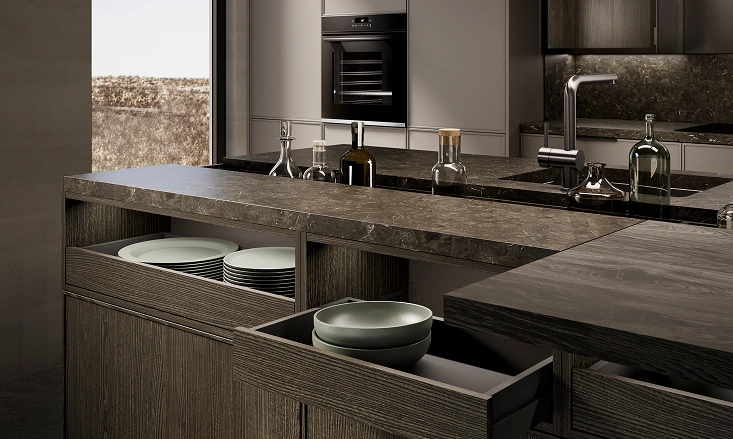 We employ the highest quality materials, including lacquer, wood veneer, steel mix, and concrete texture, to create kitchen beautiful and durable kitchen.